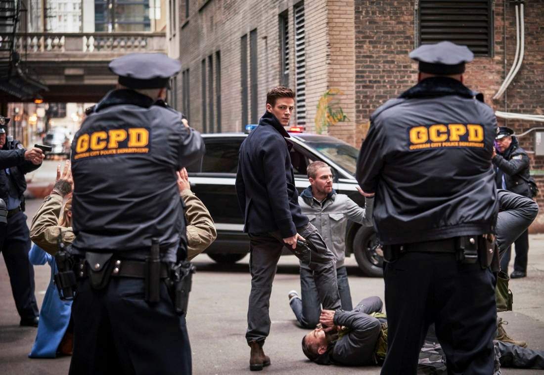 Apesar de todos os personagens serem da DC, existe a burocracia das séries serem produzidas por emissoras diferentes (Flash, Supergirl e Arrow são da CW, e Gotham da FOX), mas se o Crossover acontecer após o último episódio de Gotham, nada impediria que o Batman da série fosse aproveitado.
