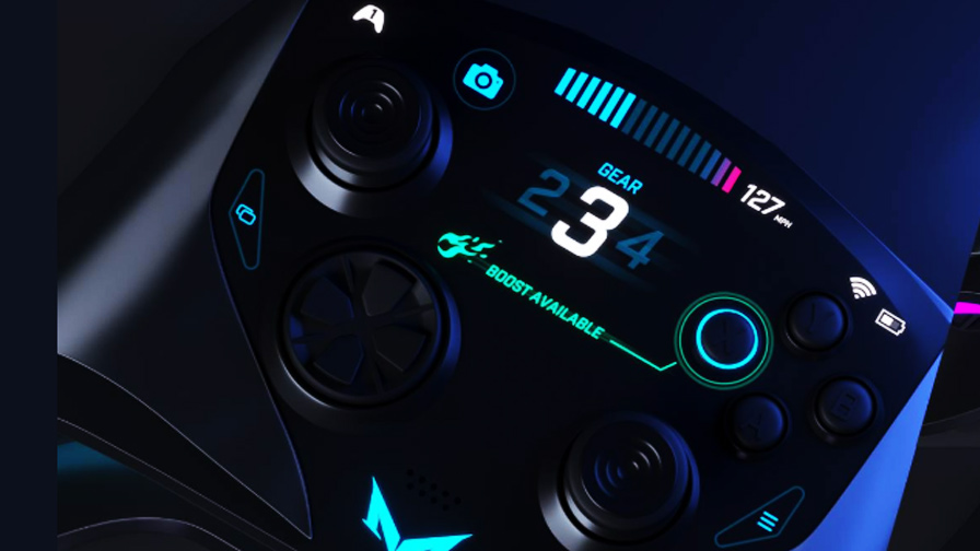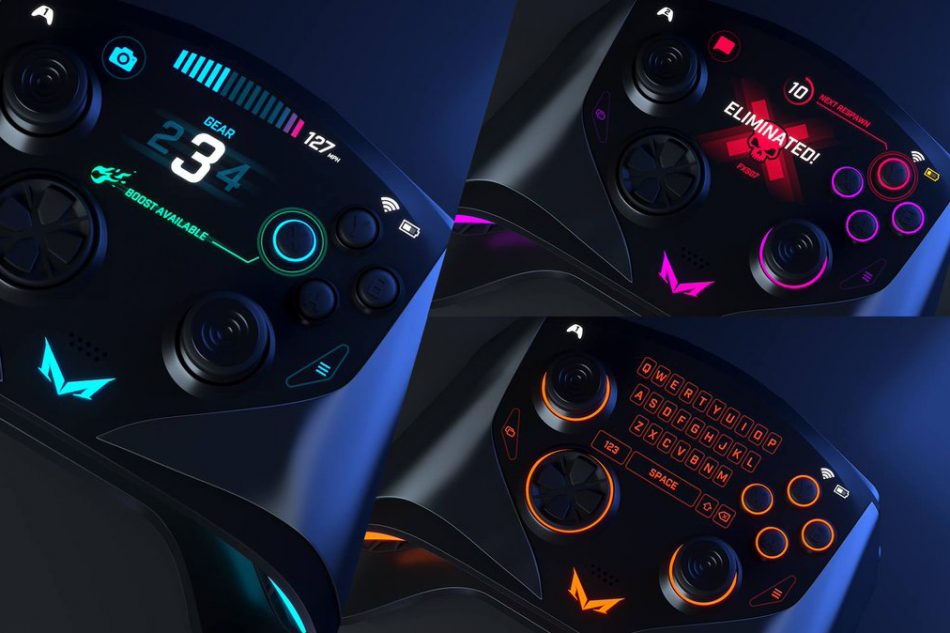 Uma das novidades será um painel LED no centro do comando que transmite várias informações. Nas imagens vemos o painel a mostrar um teclado, as horas, a eliminação de um jogador e a indicar a velocidade de um veículo. O conceito do joystick condiz com o do console, que também terão um painel na parte frontal que exibe várias informações. Atualmente, nenhum console no mercado faz algo semelhante.